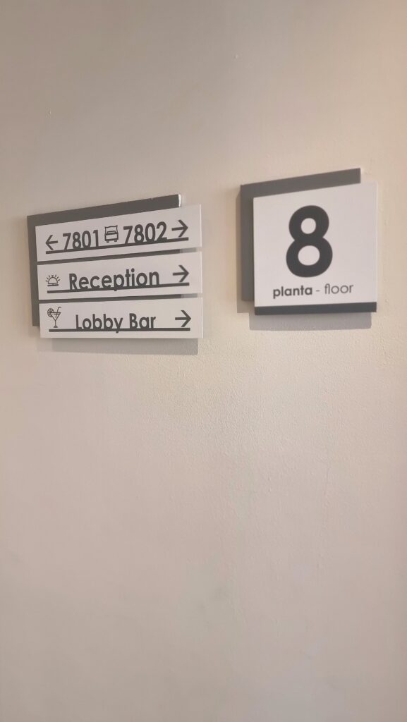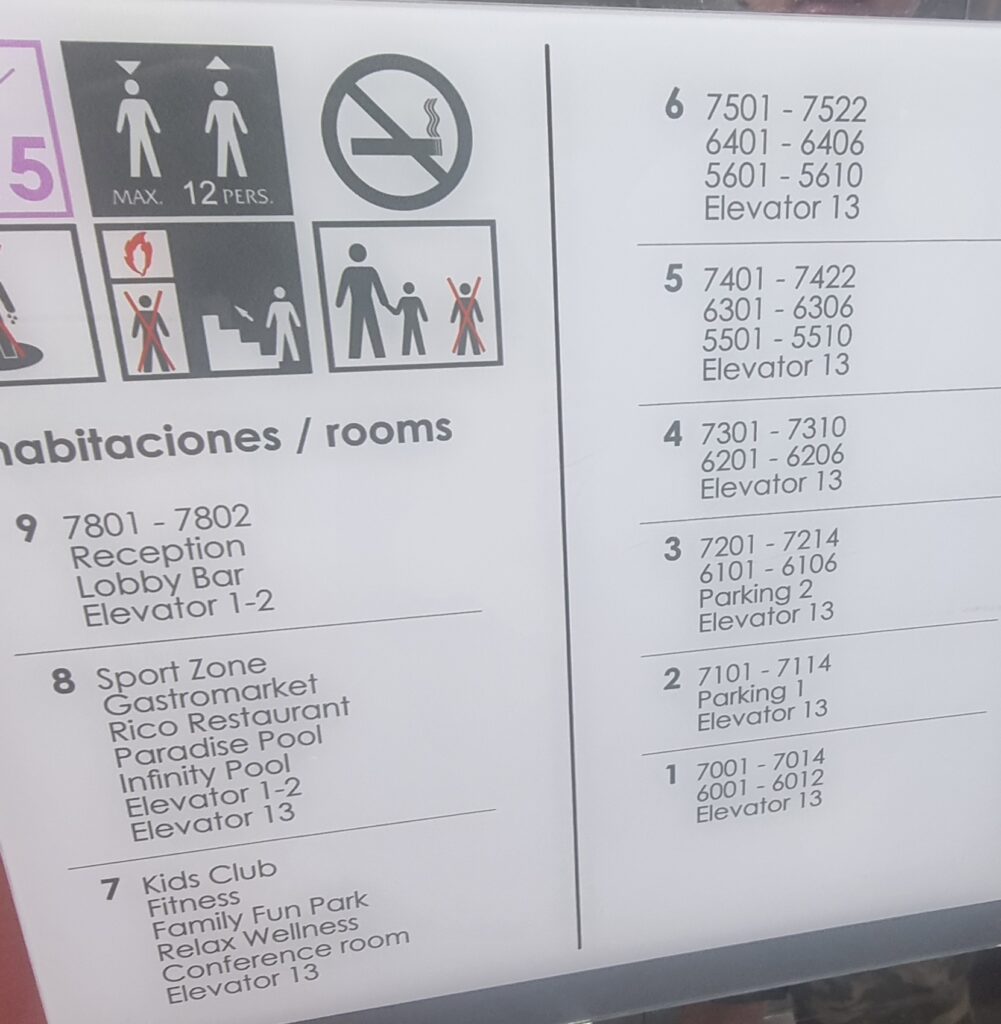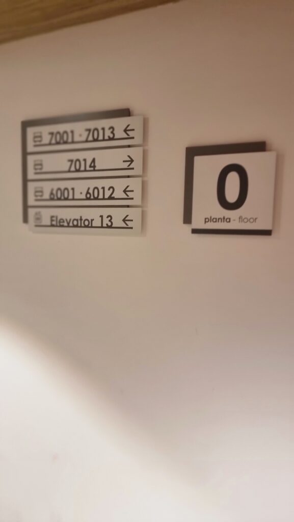 Vi bor på rum 7001. Och logiskt sett så borde det väl vara på 7:e våningen? Men det är det inte! Utan när vi tar hissen till vårt rum så trycker vi på 1 och åker upp. När hissen stannar på vårt våningsplan så möts vi av en skylt som säger att vi är på våning 0. 🤔