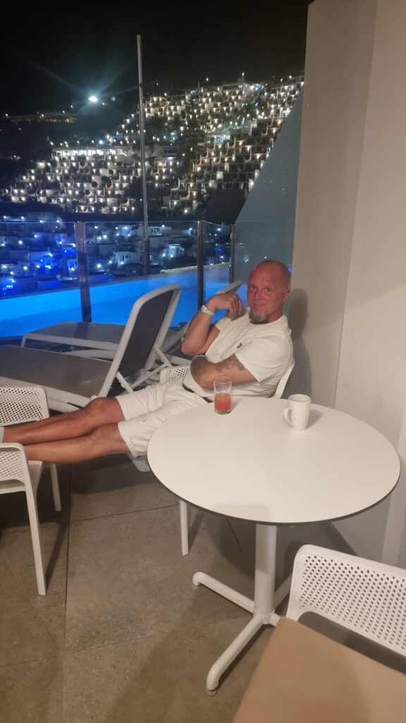 På morgnarna så går jag ofta ut och sätter mig utanför receptionen och bloggar medans Robban får sova. Jag vaknar alltid tidigare än honom och har därför fått möjligheten att se soluppgången varje morgon. 😍