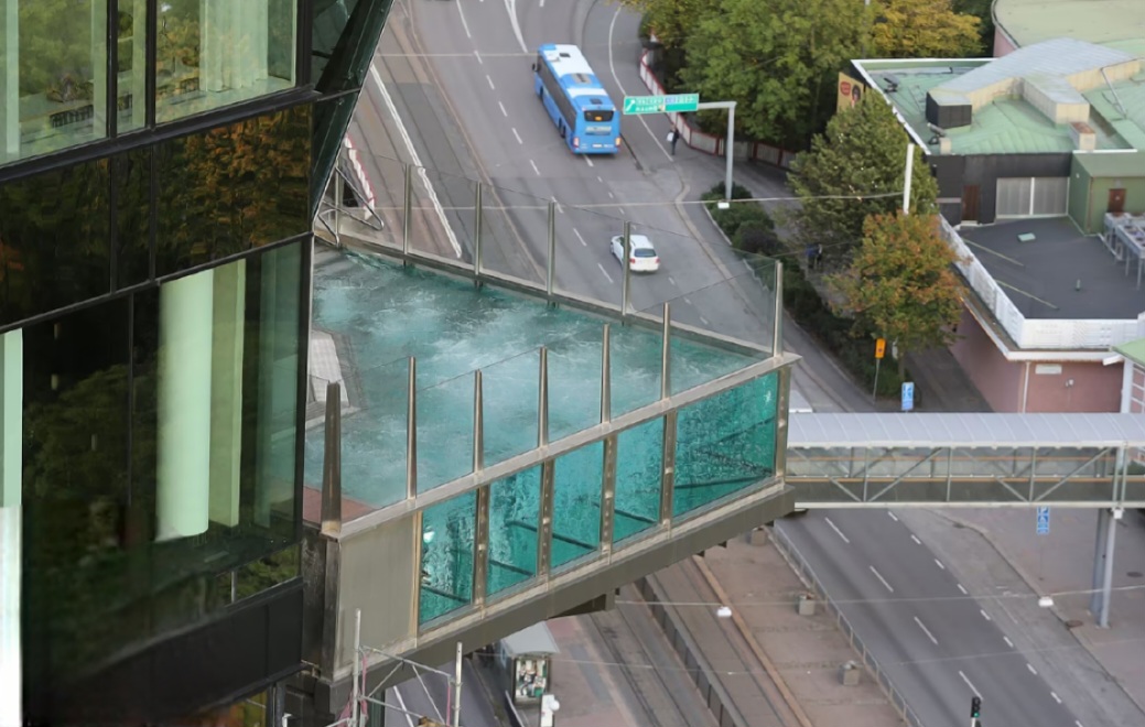 Favorit poolen var absolut utomhuspoolen. Gjord helt i glas och hängande utanför huset, 50 meter upp i luften!! 😳