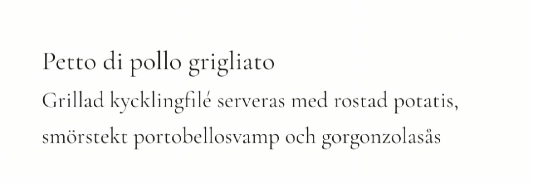 Som om man inte fick en överdos salt av svampen så fick man det av såsen. Det var minsann inget litet saltkar den kocken tappat i maten!! OM gatorna i Göteborg blir dåligt saltade i vinter så är det för att Restaurang Angelo använt upp allt salt i sin kycklingrätt. (Dock hoppas jag att det inte är vägsalt dom använder)