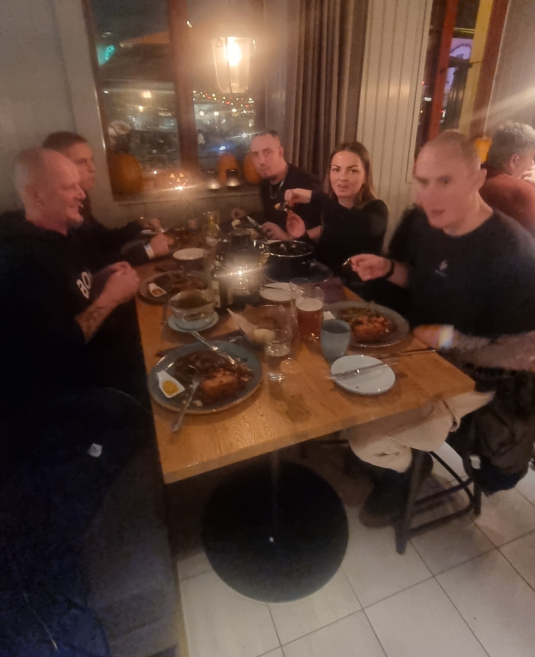 När vi plaskat omkring där tills vi var helt skrynkliga (ut över de vanliga åldersrynkorna) så masade vi oss upp på rummet igen och gjorde oss redo för lite mat.