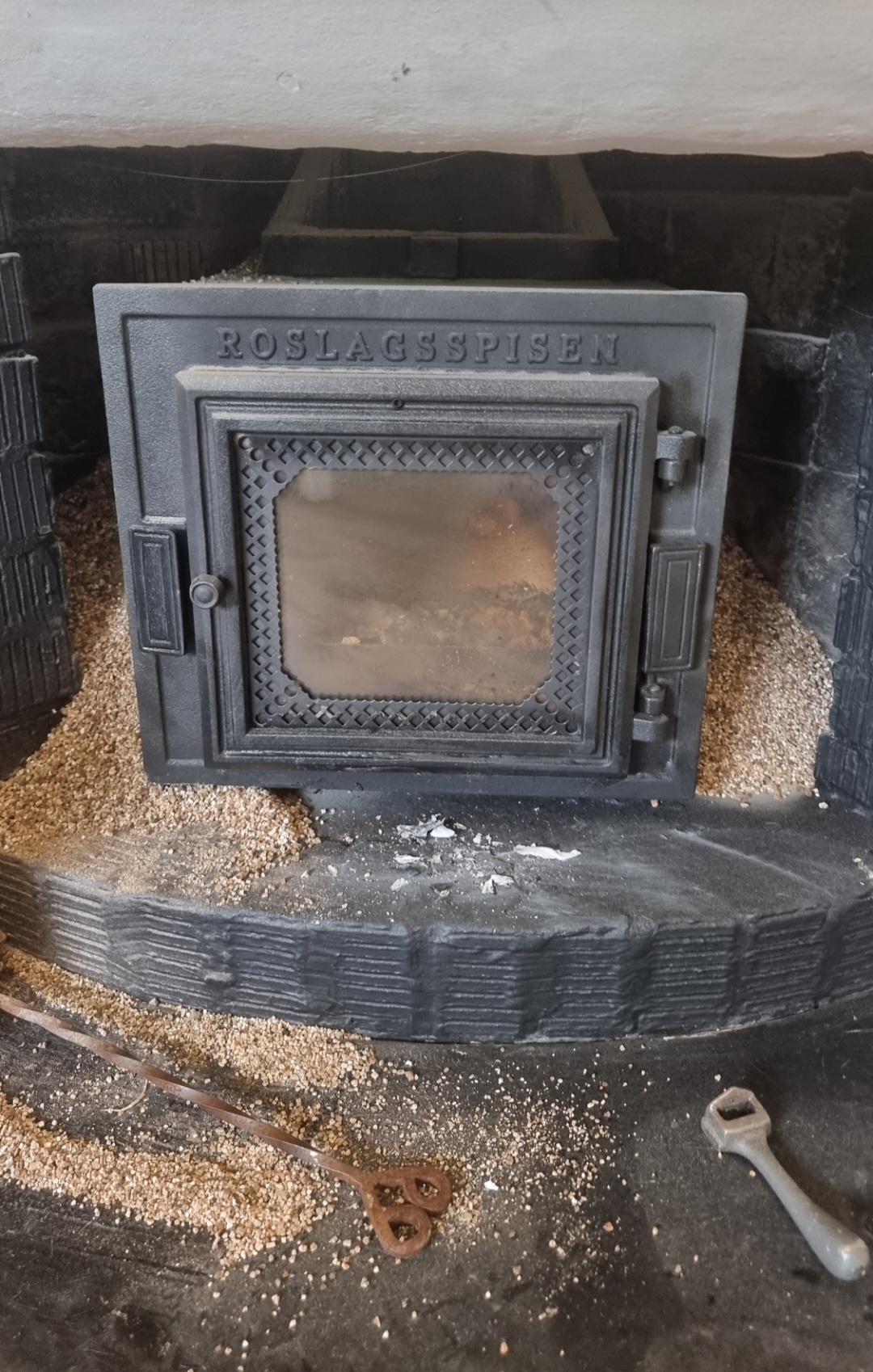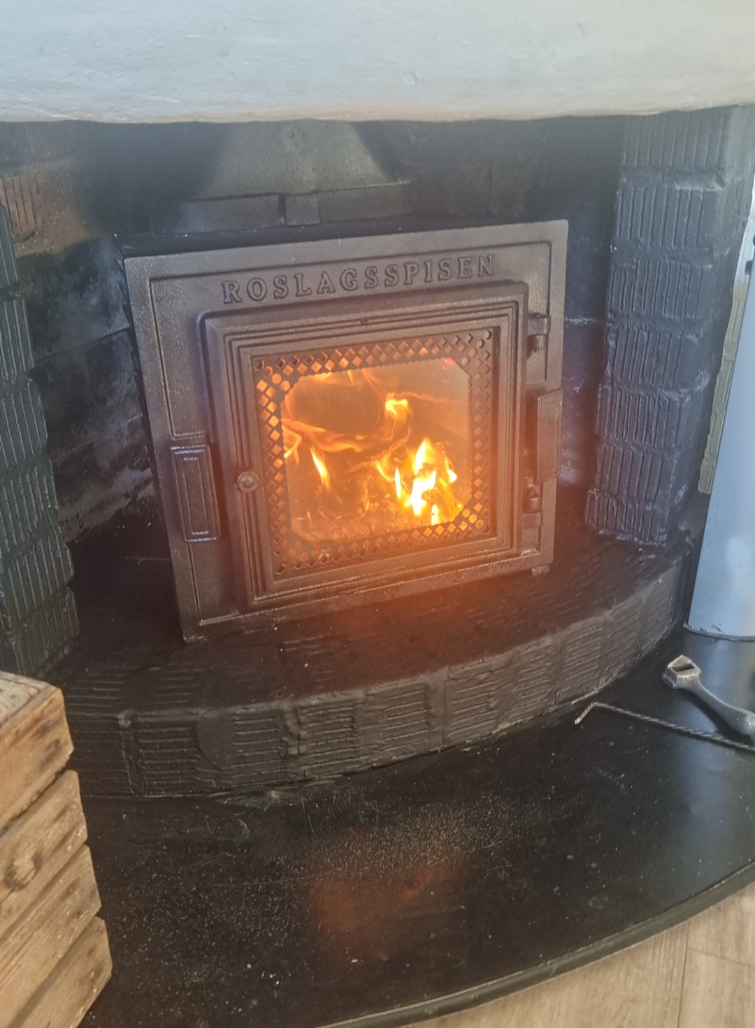 Vi (Robban) blev liksom inte riktigt färdiga till att ta tag i det helt enkelt. Sist sotaren var här så berättade jag skamset att vi rom hade en ny kamin men att vi inte bytt den ännu. Men att iallafall ha införskaffat den är ju ändå en bit på vägen.