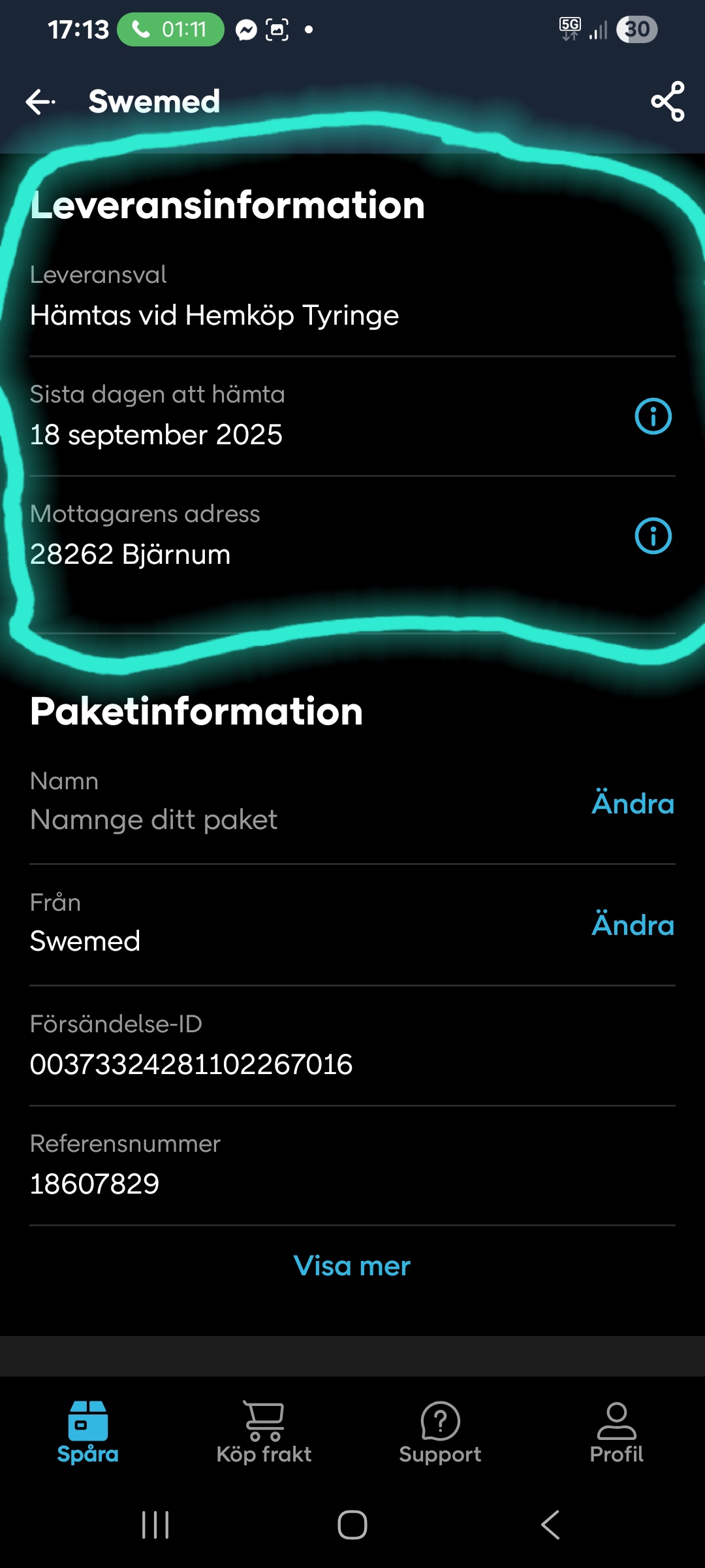 När jag kollade i appen så hade paketet lämnats på Hemköp i TYRINGE!! Det är 2½ mil bort och knappast mitt närmaste utlämningsställe 😡 Vad sysslar postnord med?? Har dom varken läsförmåga eller lokalsinne?