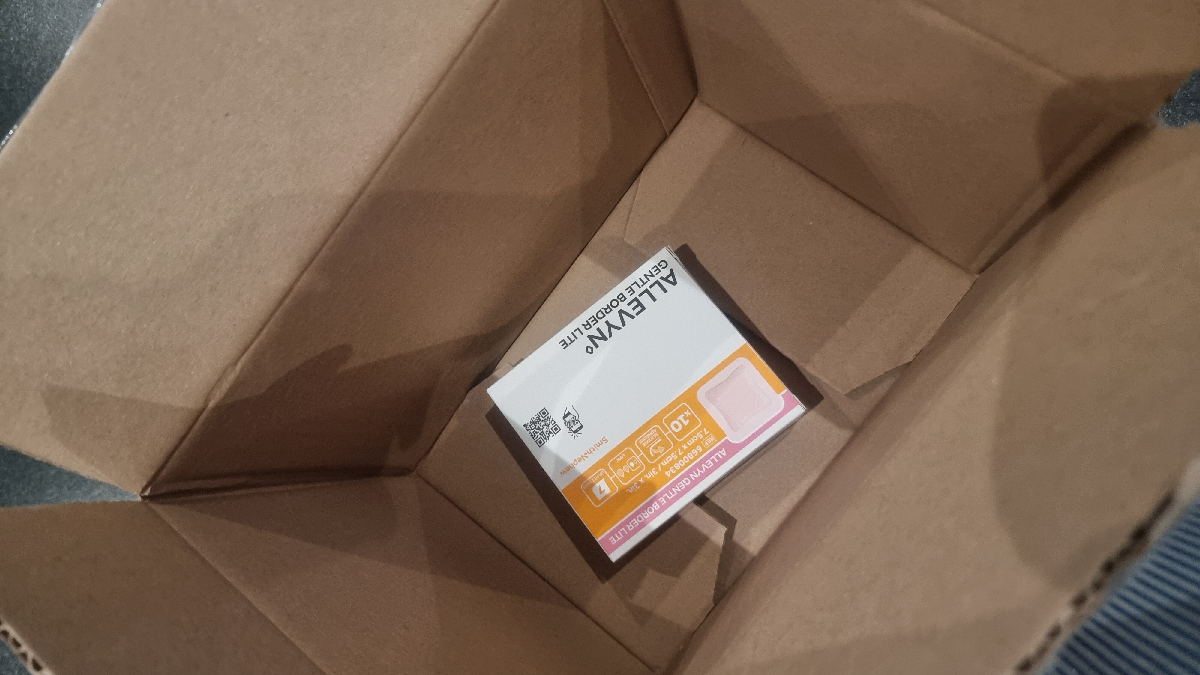 Jag har tre öppna sår på benet som vägrrar att läka (Bara det är en historia för sig 🙄 Men det får vi ta en annan gång. (jag har haft dom i mer än 3 månader!!) Till dom envisa såren behöver jag ett speciellt (svindyrt) förband som jag måste beställa på nätet. Så det gjorde jag i början av veckan. Jag valde hemleverans och betalde så klart frakt. Företaget förtydligade att om paketet inte skulle få plats i brevlådan så skulle det levereras till närmaste utlämningsställe, vilket för min del är på Ica nere i byn. Men en liten förpackning med förband skulle ju utan tvekan få plats i brevlådan. Jag har tagit emot större försändelser än så tidigare.