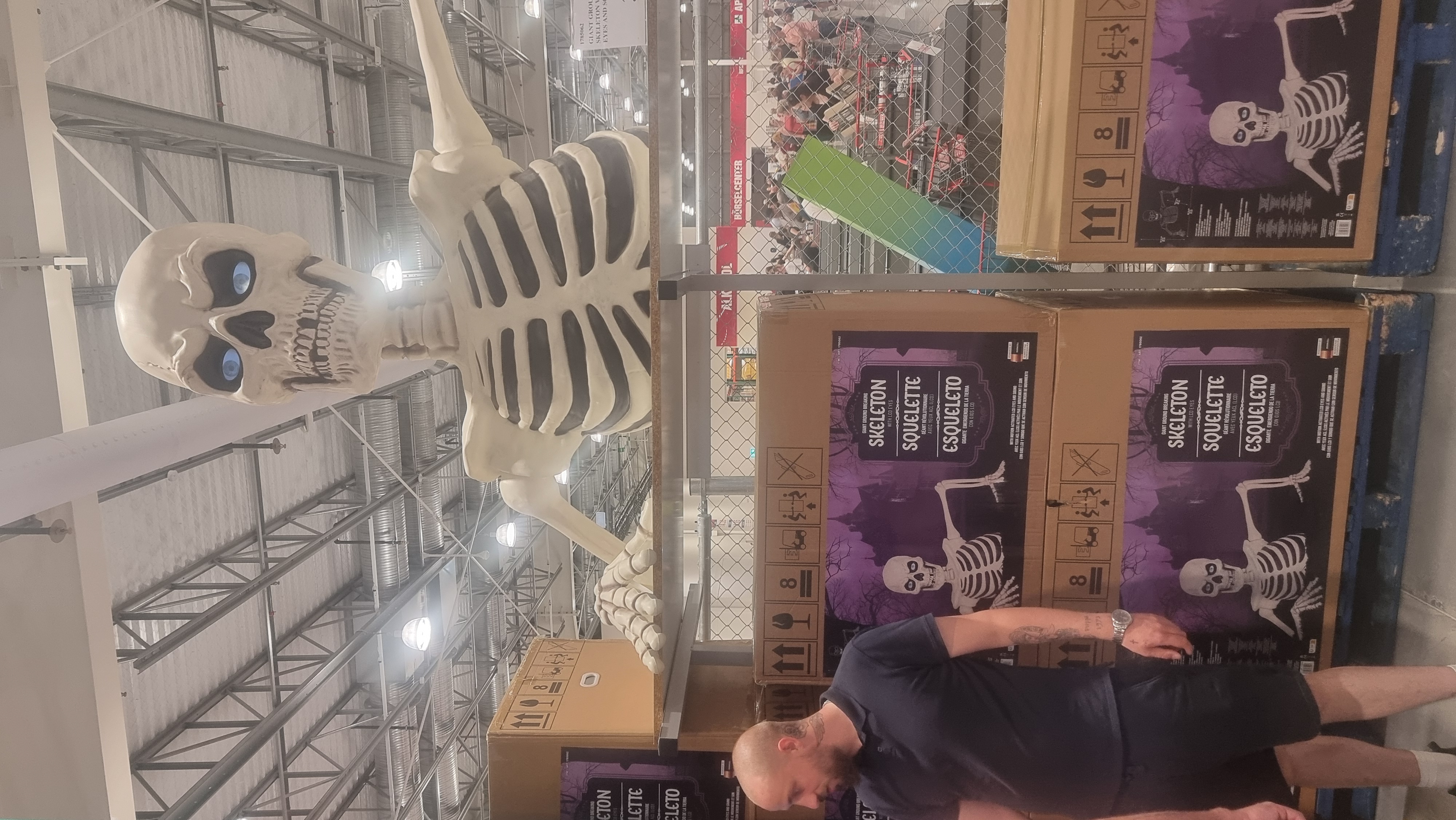 Eller varför inte ett gigantiskt skelett med rörliga ögon att ha i trädgården till halloween?
