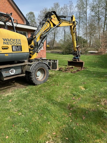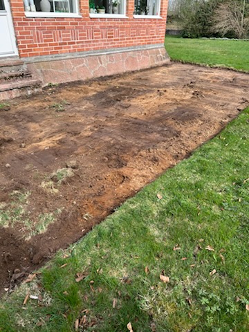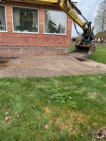 "Grannen" (som inte ens är vår granne längre) ringdes in för grävarbete. Det måste ju grävas av för plattorna och det vill man inte gärna göra för hand.