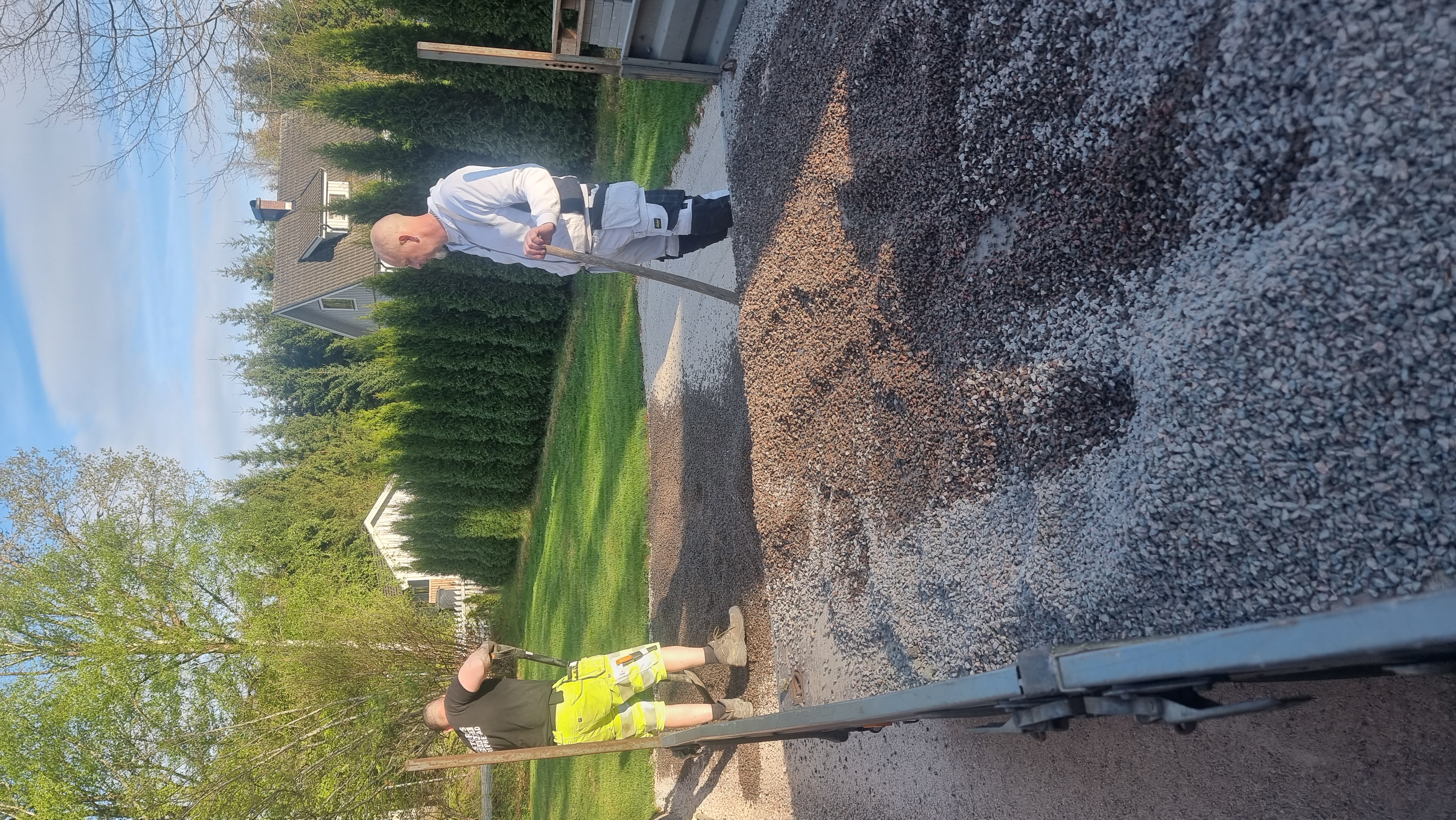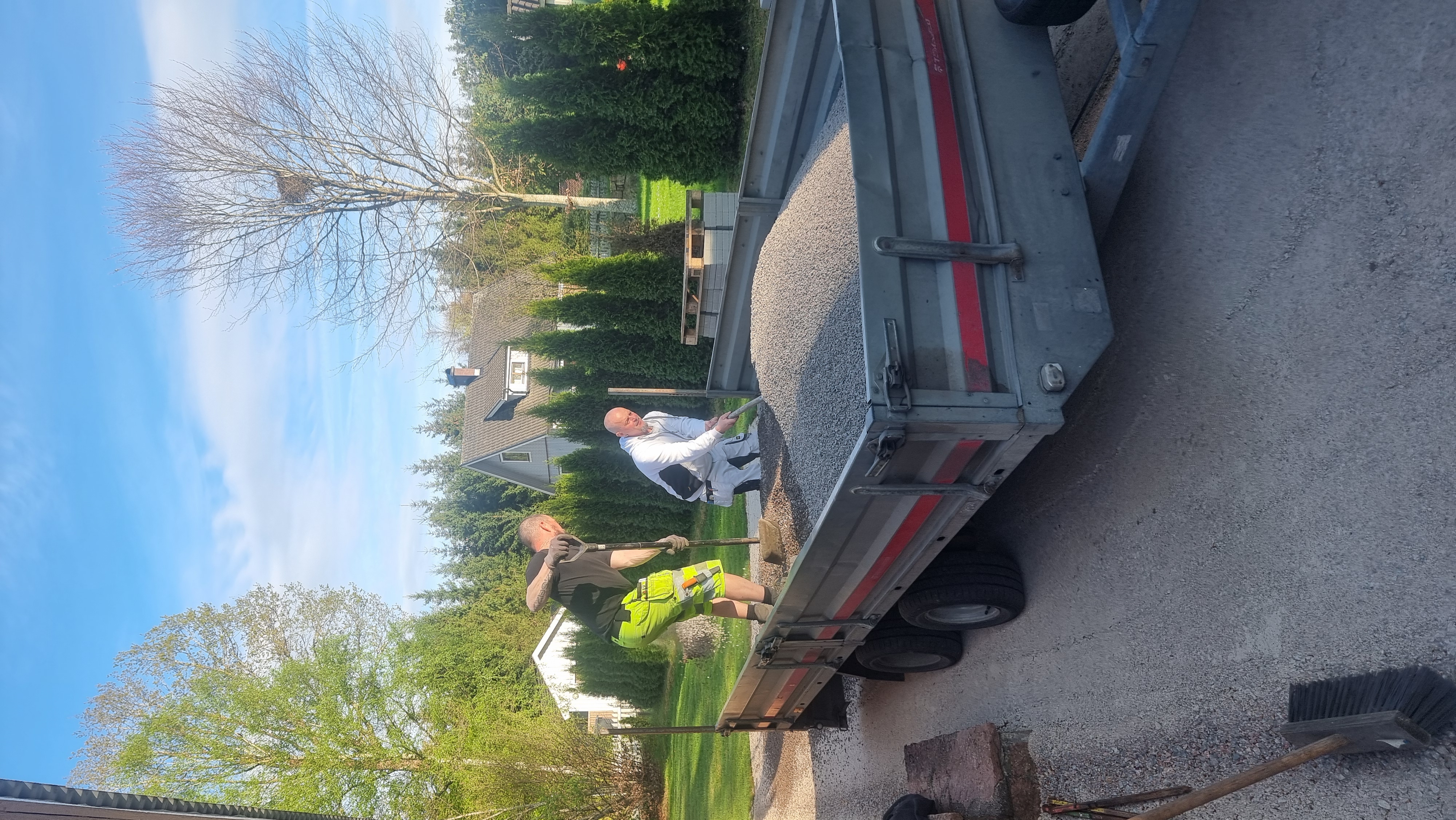 Det skulle på ännu mer grus. Och det fick skyfflas för hand.