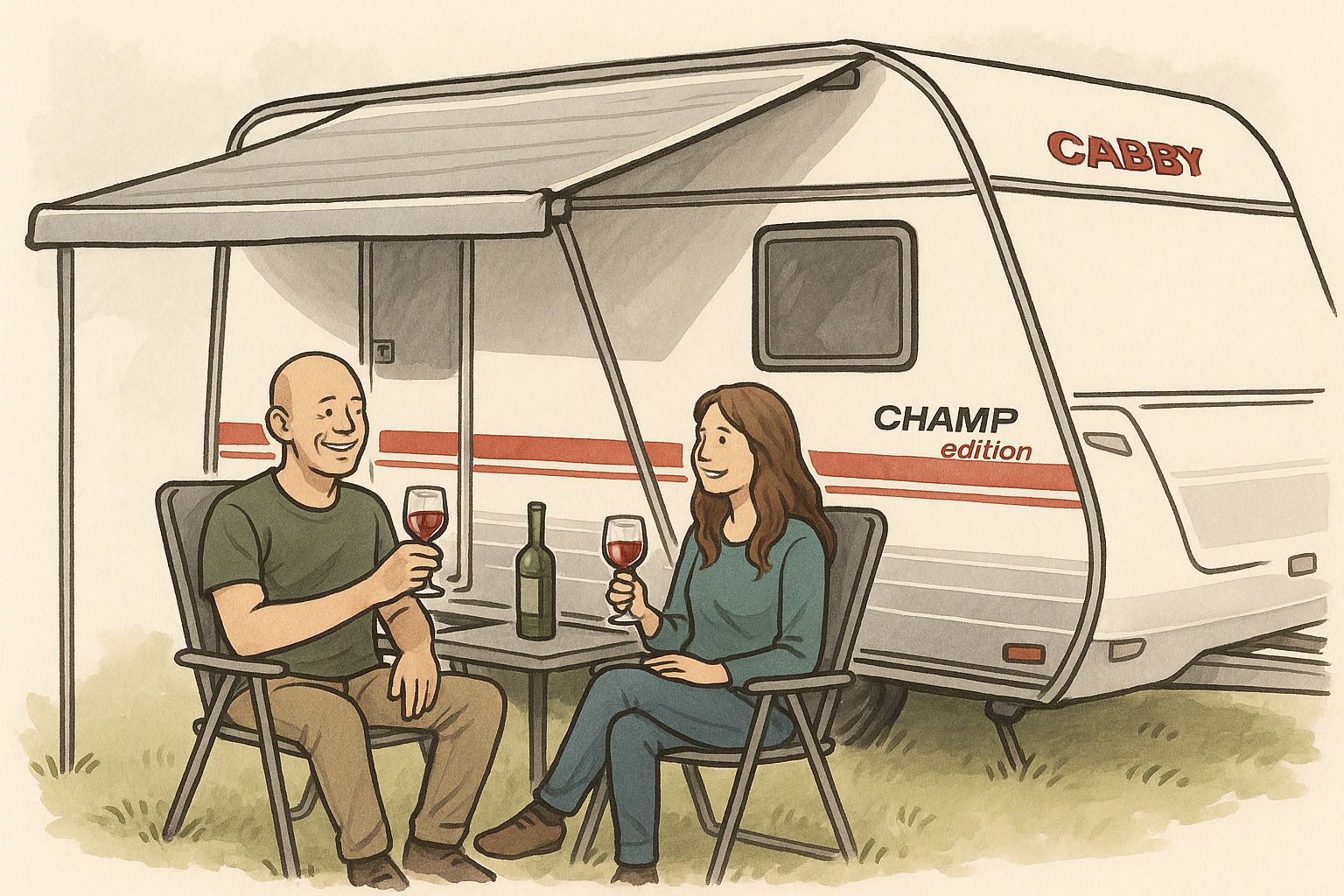 Robban brukar backa upp husvagnen bakom huset så att husvagnsdörren kommer mitt för uterumsdörren. Det är perfekt när man ska packa i eller ur vagnen. Nära och bra. Ett steg ut ur huset så är man istället i husvagnen, ett steg ut ur husvagnen och man är i uterummet. 😃