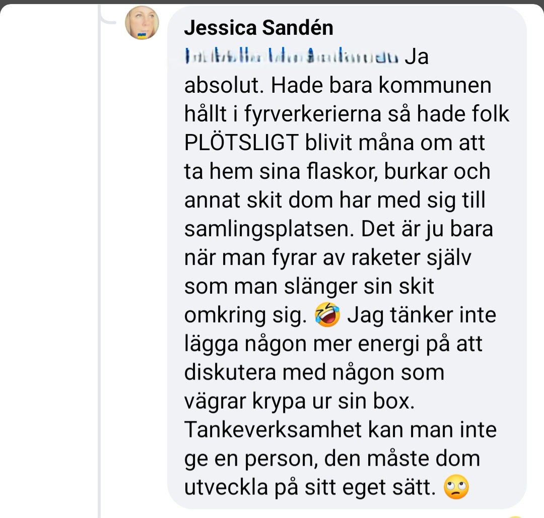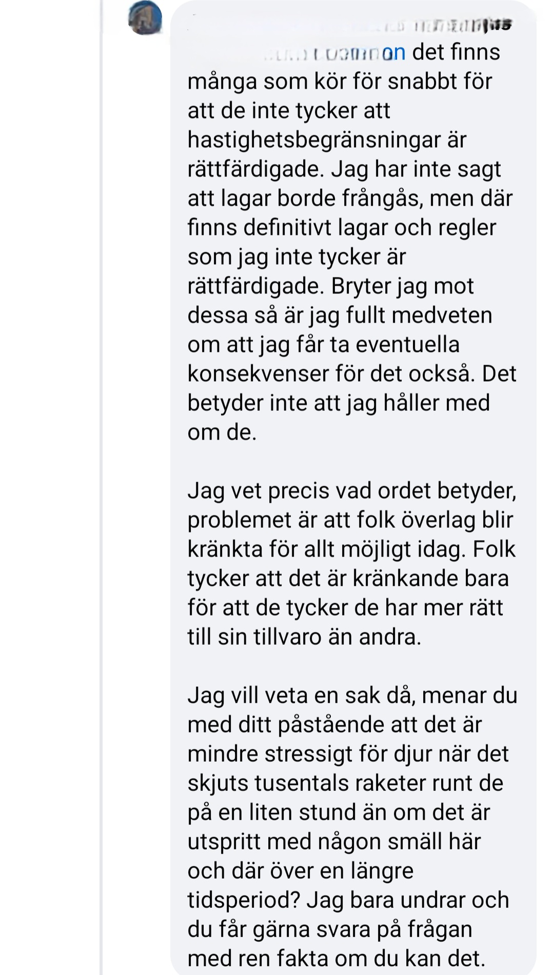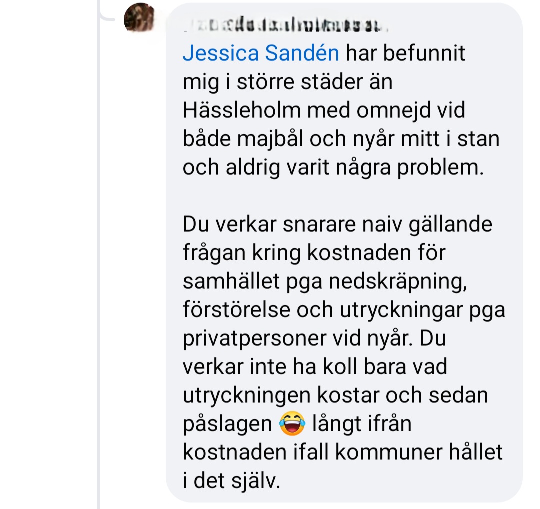 Och tänk så rätt jag hade. Röken från smällaren han inte ens skingras innan första kommentaren kom. Av hänsyn till att en del är så pass lättkränkta att dom tom. kan kränkas av sina egna kommentarer så har jag raderat namn och bild på kommentatorerna. För rättvisans skull så har jag gömt allas namn och bild (utom mitt eget) trots att jag vet att en av kommentatorerna utan problem skulle stå för det h*n skriver och dessutom inte ens vet hur man känner sig kränkt 🤣