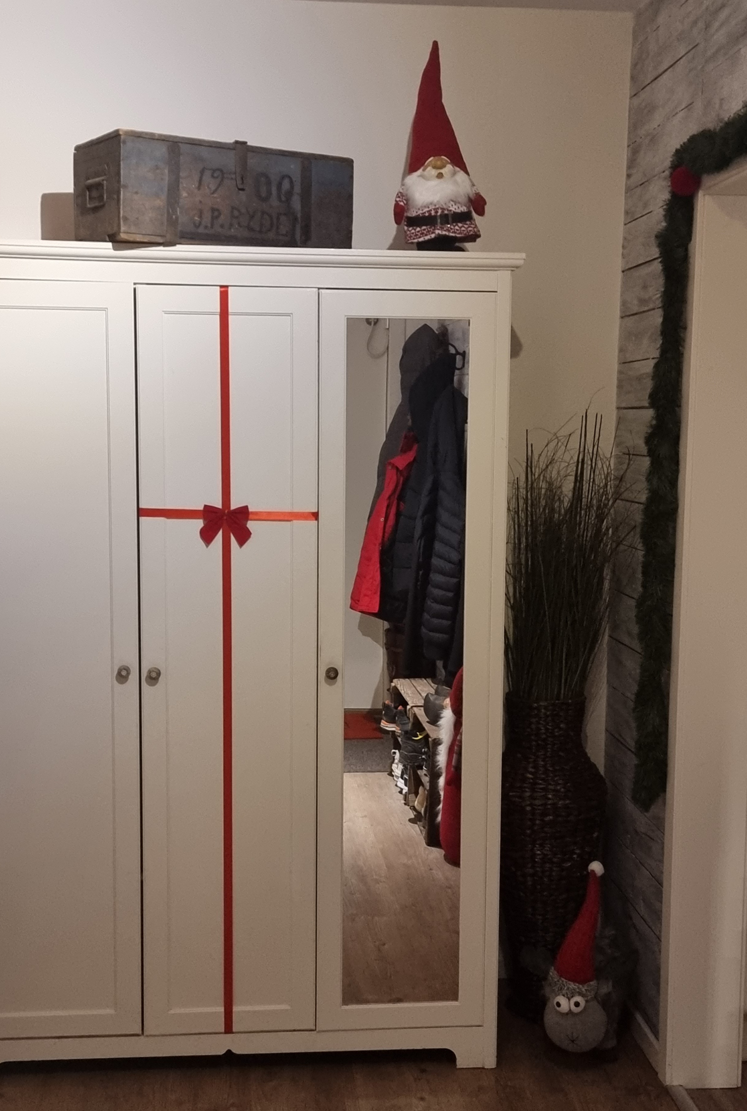 Under tiden som jag pyntar så poppar det upp en massa idéer som jag sen lägger onödigt mycket tid på. 🙈 Som att göra ett "paket" av en garderob eller ett vitrinskåp