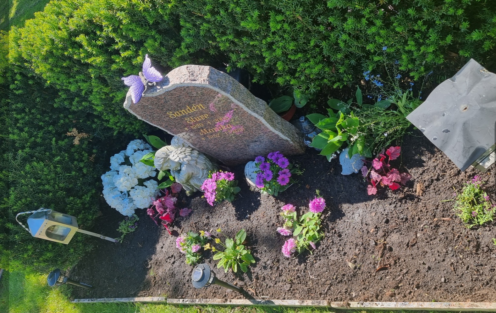 Nu är där somrigt, lila och fint där igen, precis som mamma (och farfar) förtjänar att ha det. ❤️