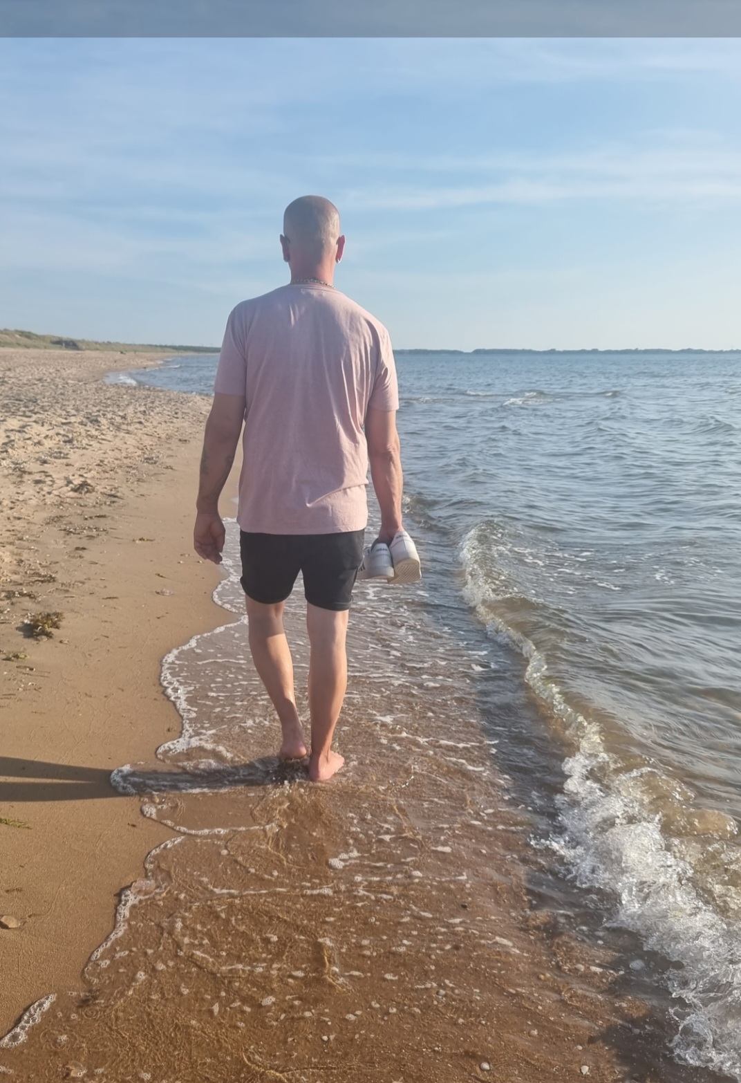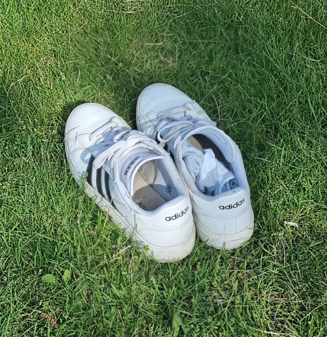 ........ Han hoppade ur strumpor och skor för att kunna gå barfota.