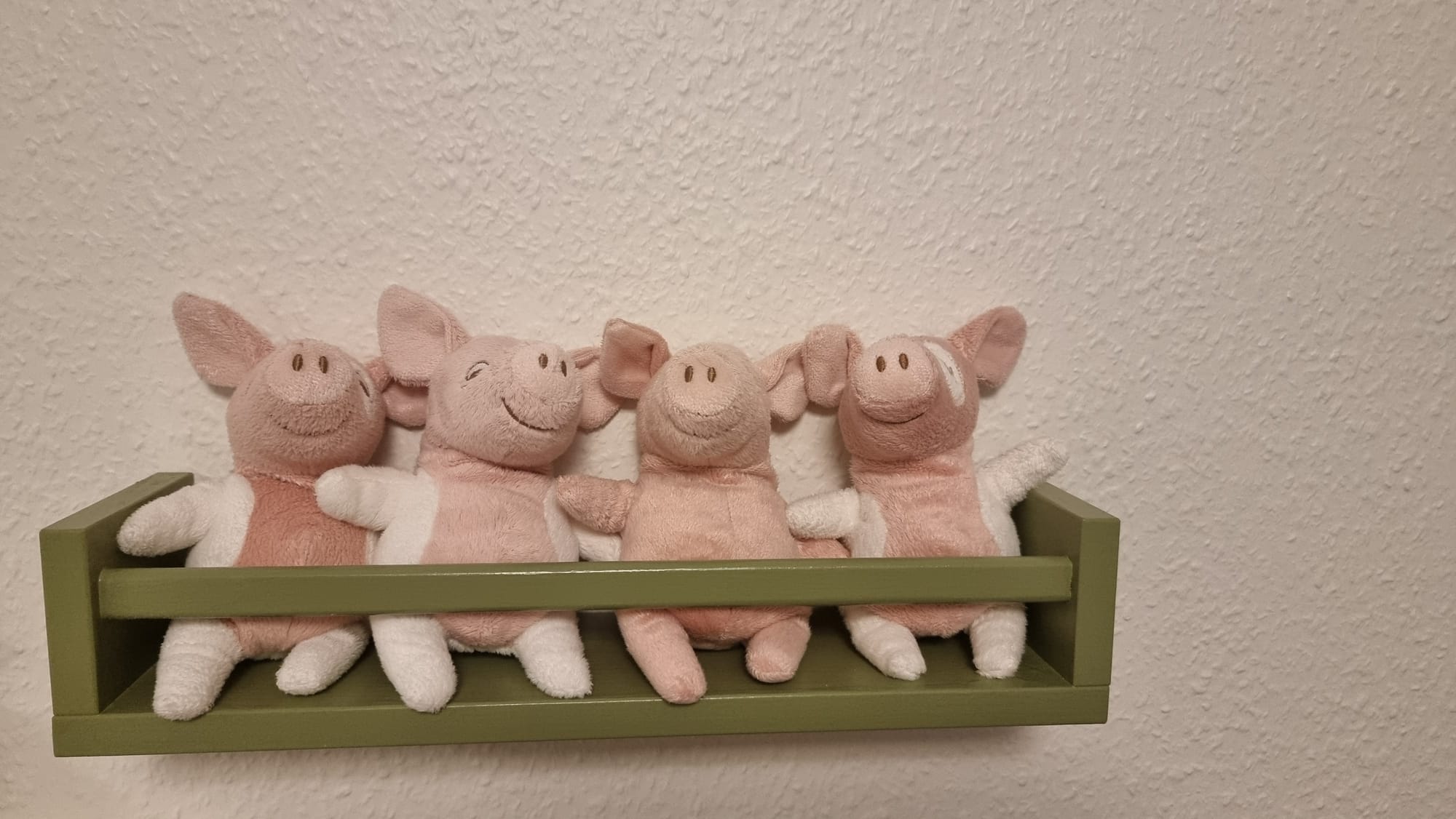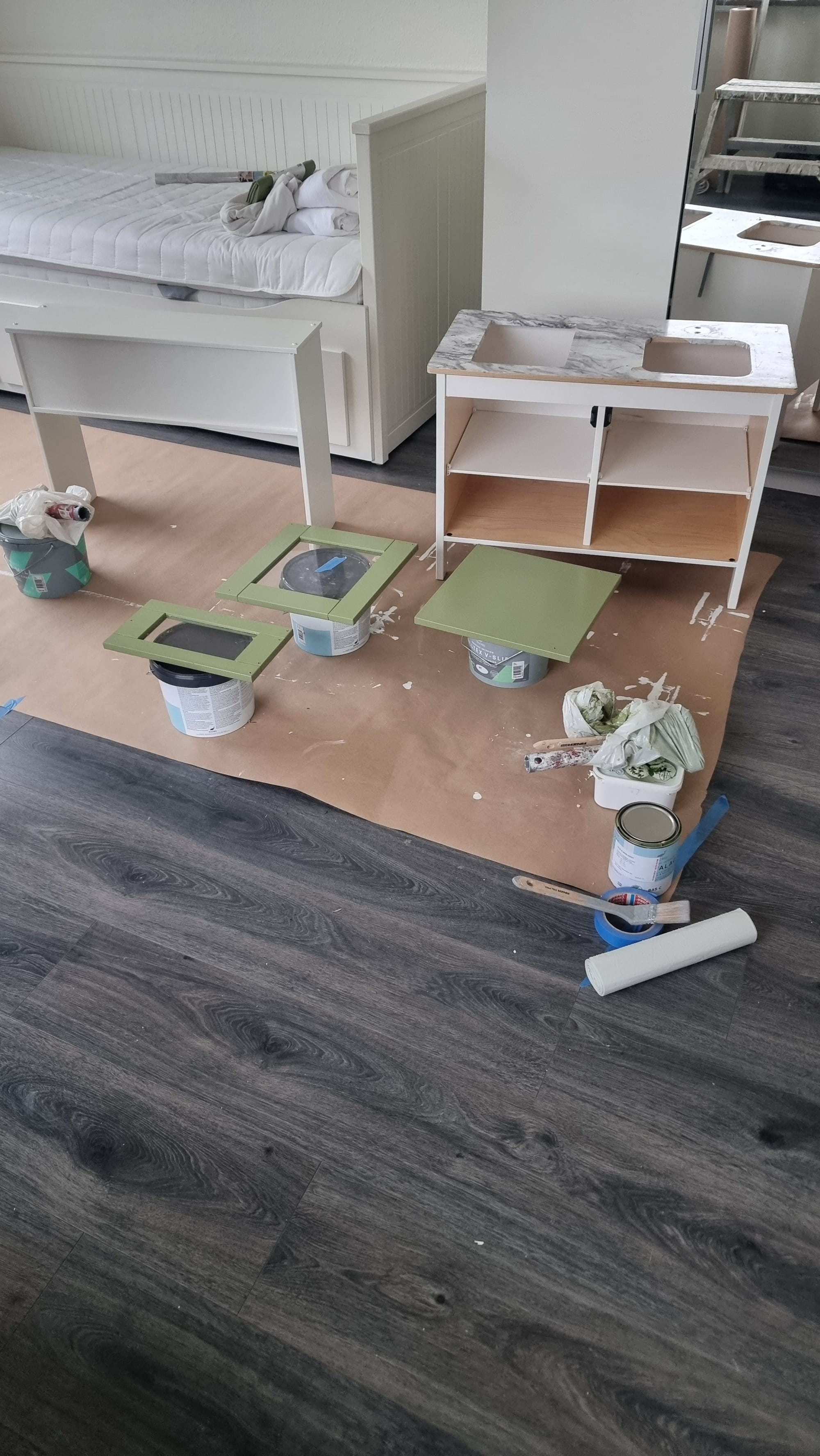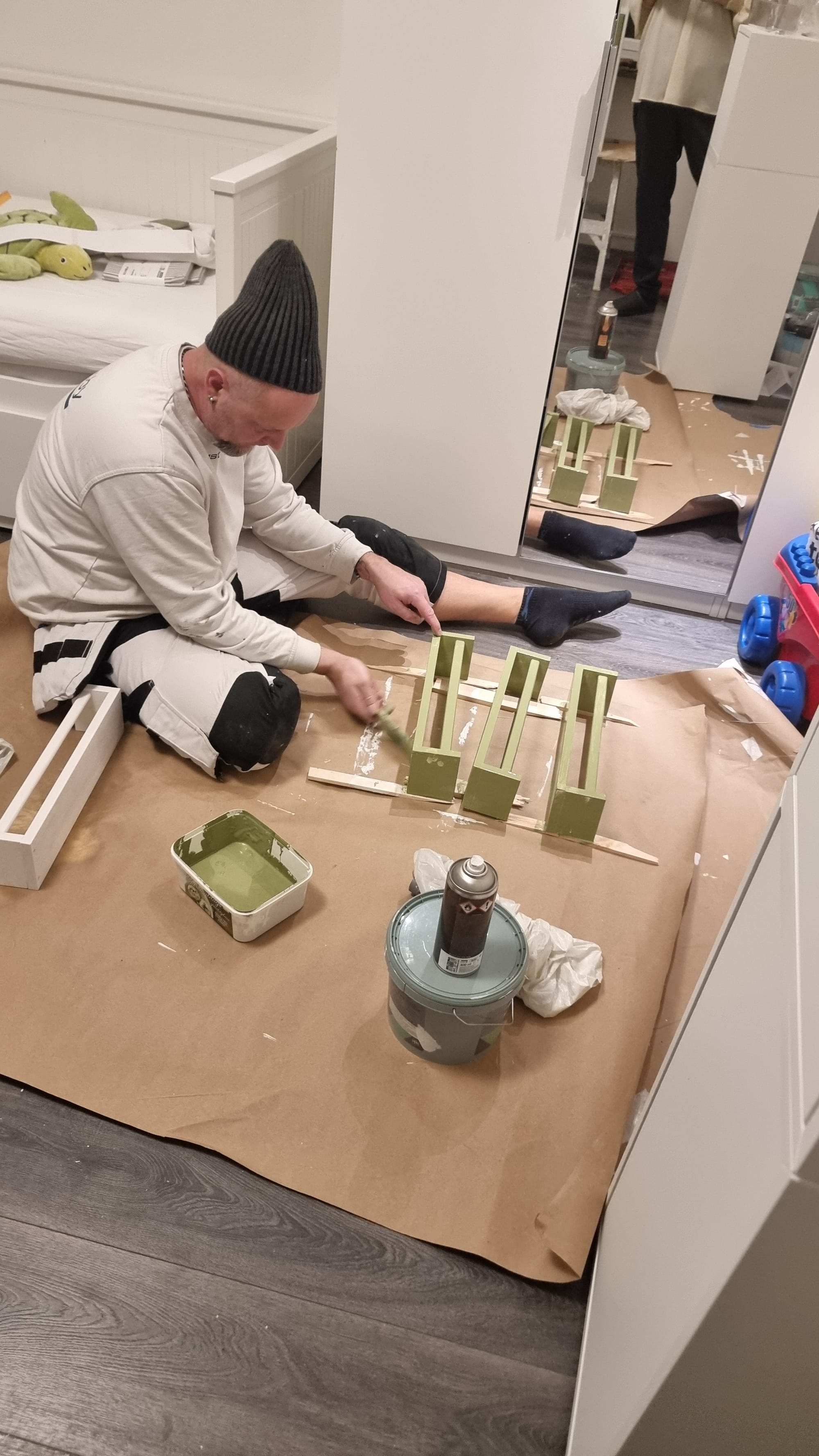 Jag köpte även hyllor på Ikea för böcker och lite gosedjur. Och dom ville jag så klart ha i samma färg som köket. Så Robban fick måla ännu mer. (Och sucka ännu ljudligare)