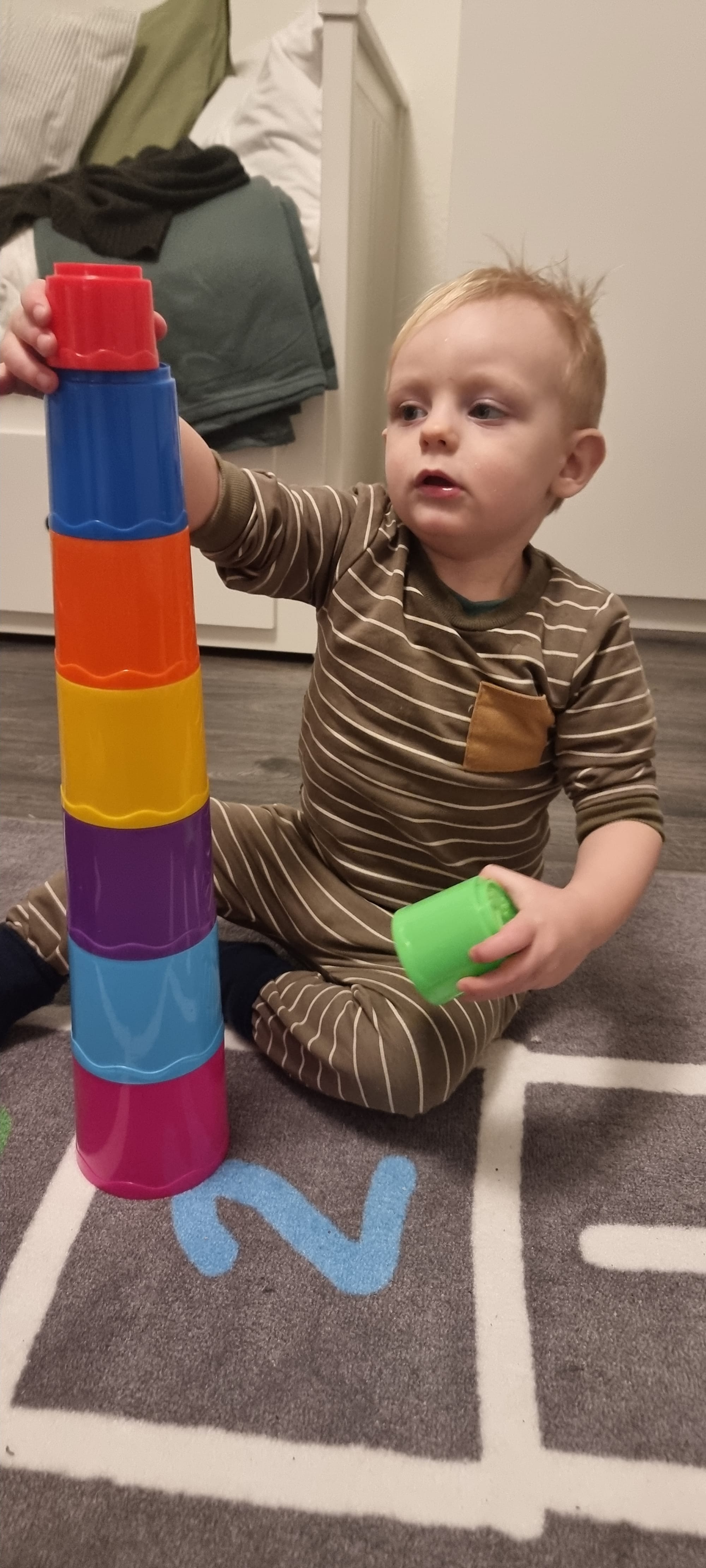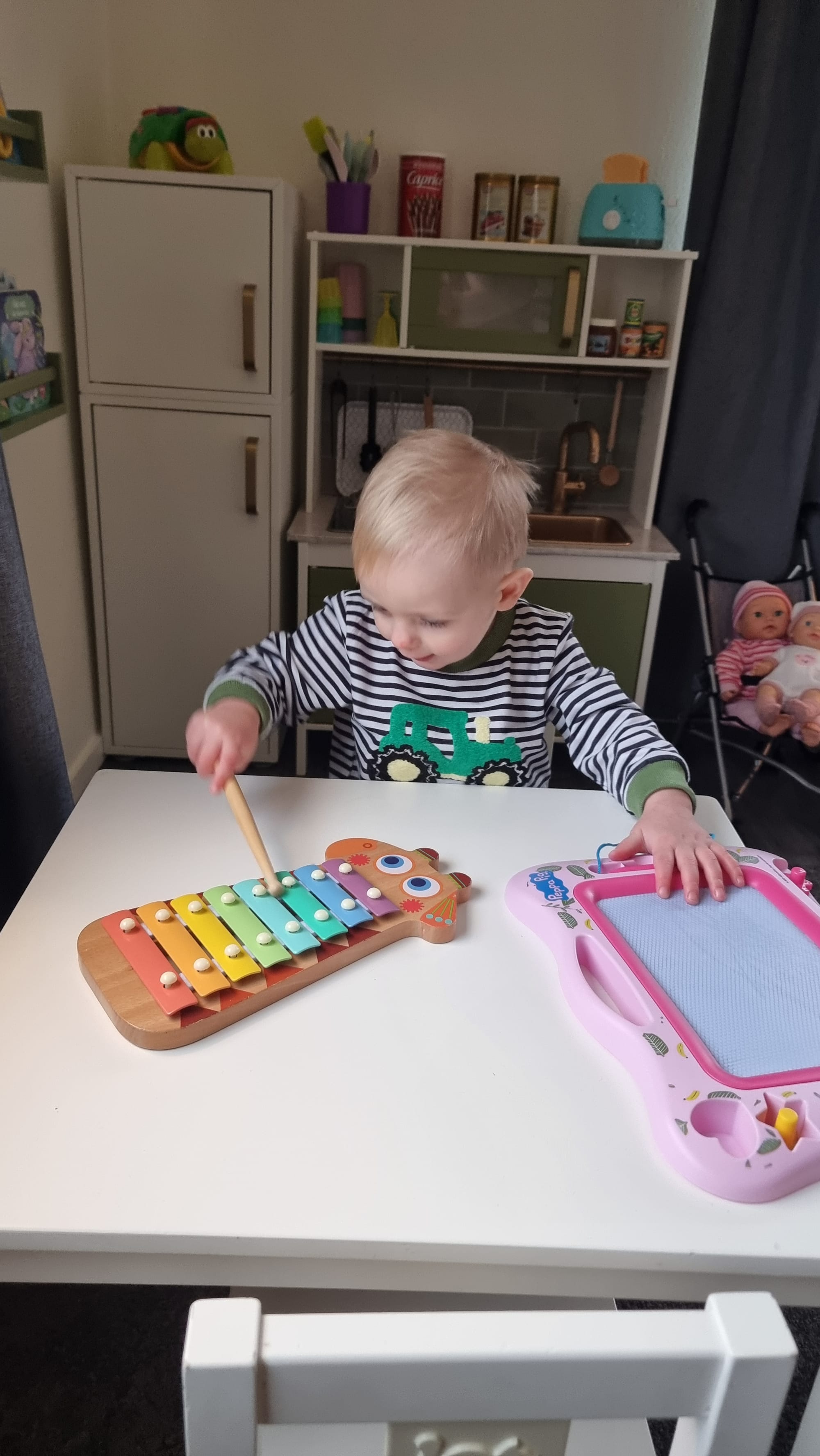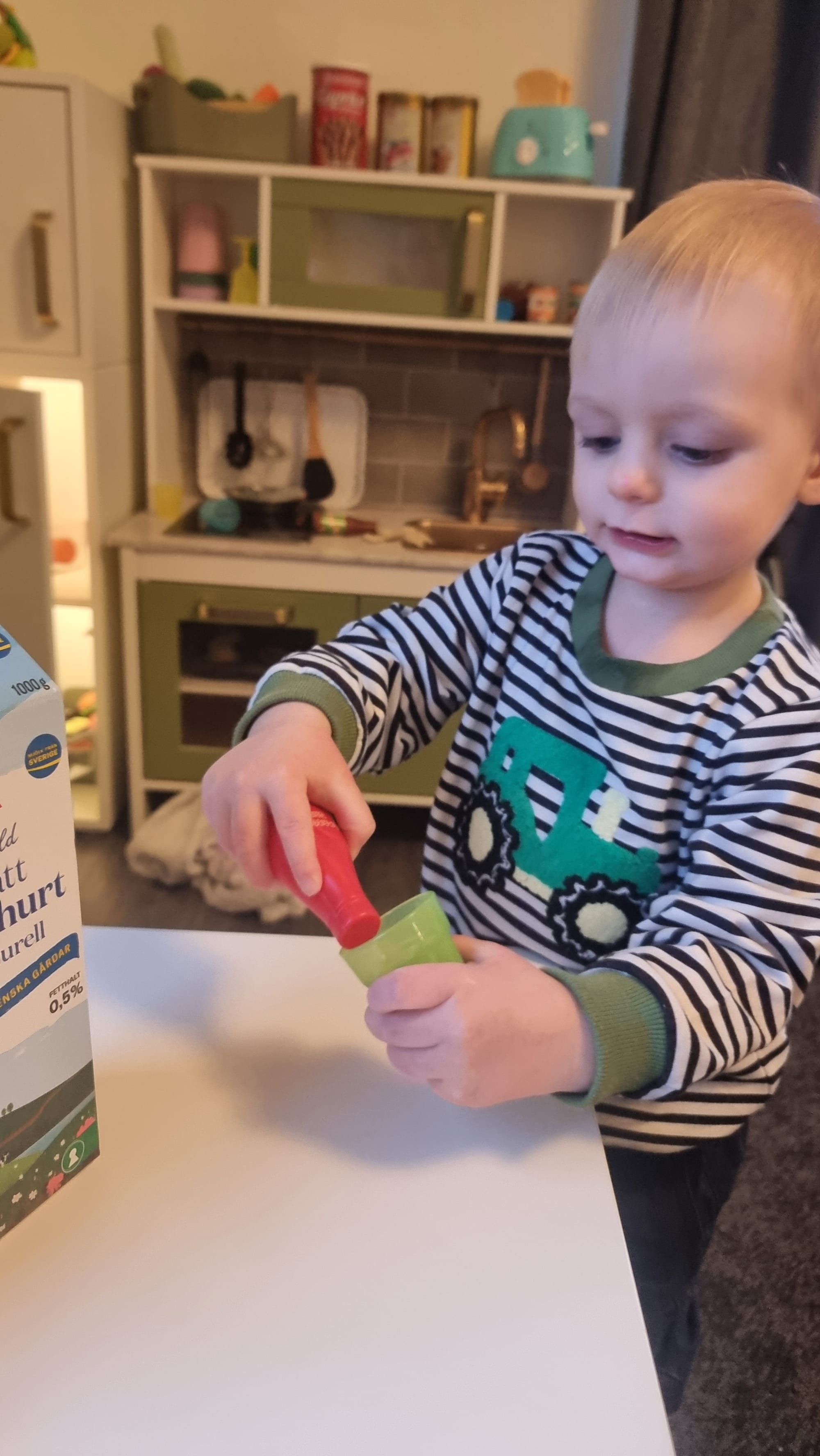 Den första som kom på besök var Leon. Han är van vid att det står en låda med leksaker i tvrummet åt honom när han kommer. Det gjorde det inte denna gången och han verkade bli ganska besviken. Jag bad honom gå in i Liams rum och titta om hans leksaker fanns där. Han blev ganska förvånad när han kom in där och såg att det inte alls var Liams rum längre. Alternativt så funderade han på varför Liam hade fått alla leksakerna. 🤣