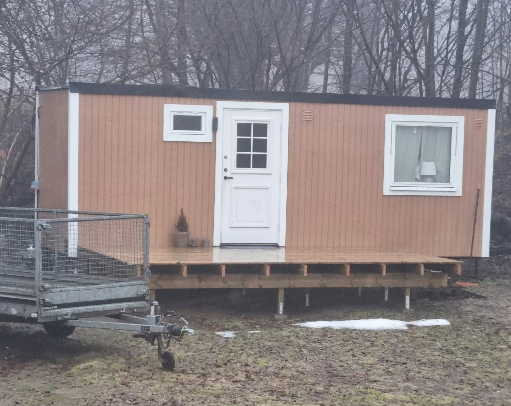 Liam har övergett sitt gamla pojkrum och flyttat hemifrån.....utan att flytta hemifrån. Han har flyttat ut i en "bod" på tomten. En gammal arbetsbod som har renoverats och gjorts om till bostad. Så nu är vi grannar istället för sambos. 😉