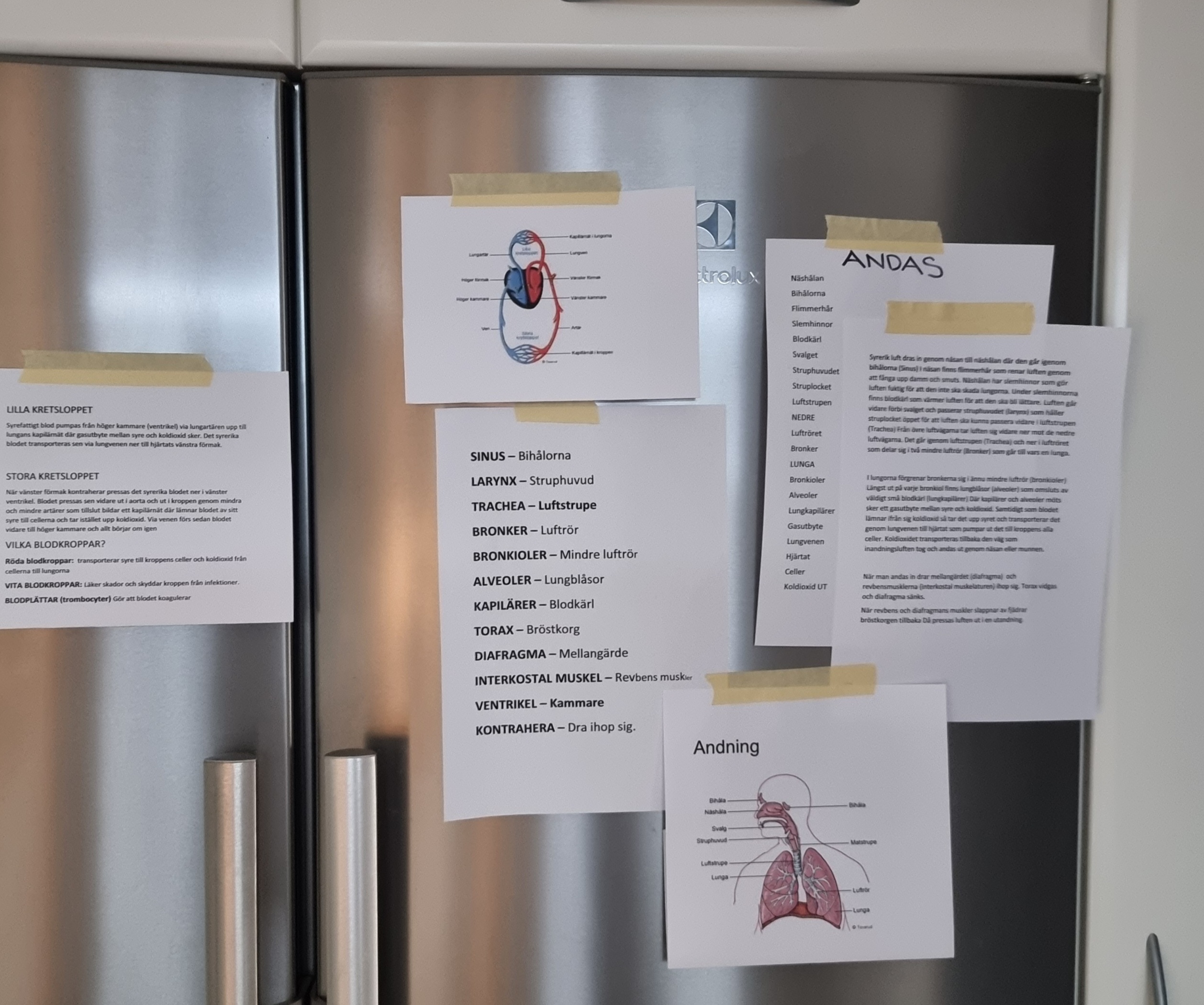 Jag ska kunna förstå och förklara andningssystemet med en massa krångliga latinska ord, kunna förstå och förklara stora och lilla blodomloppet. Jag har läst, läst och läst. Och jag förstår men det fastnar liksom inte.