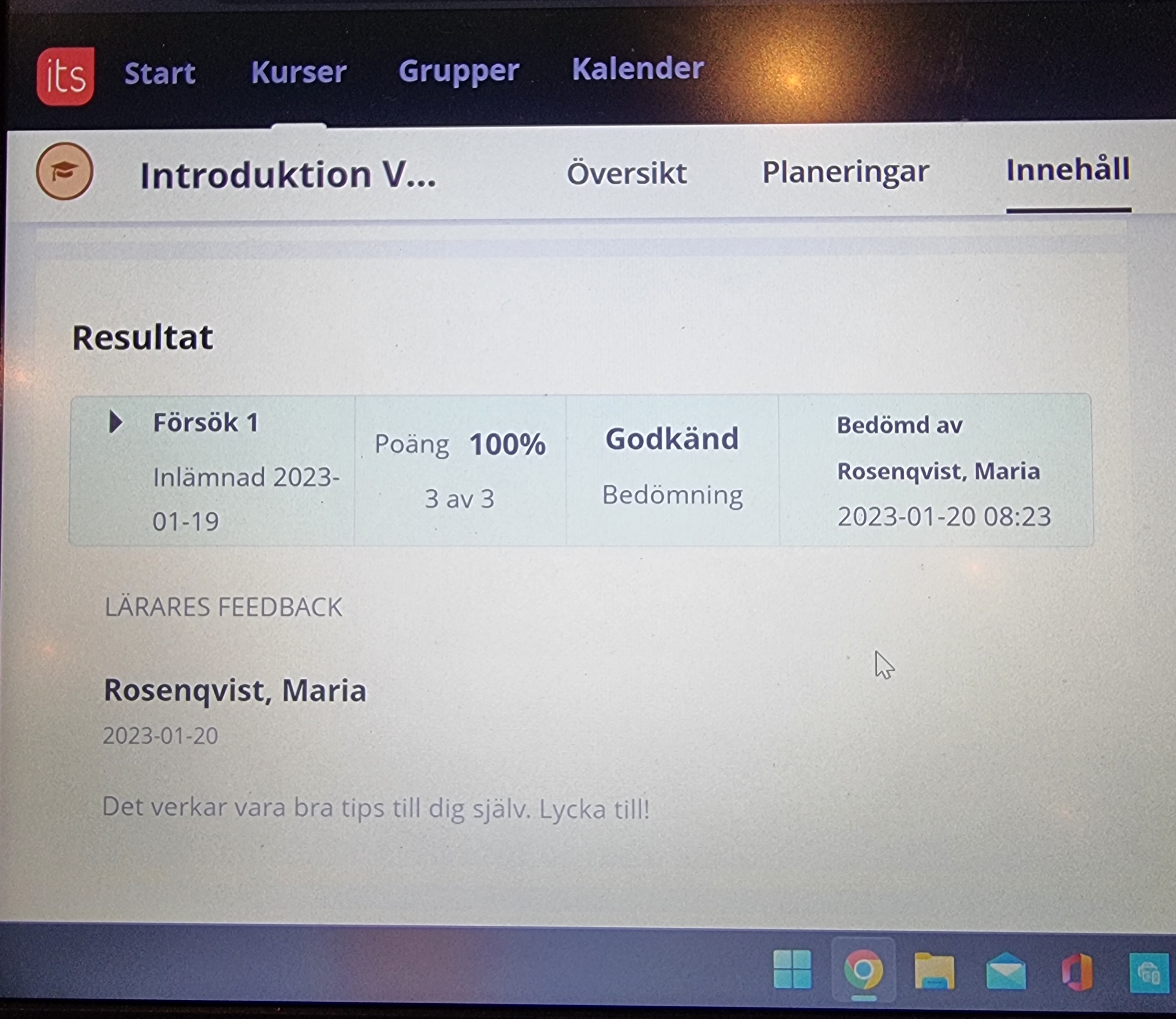 En annan uppgift handlade om studieteknik. Den var väldigt enkelt och idag fick jag min första bedömning.