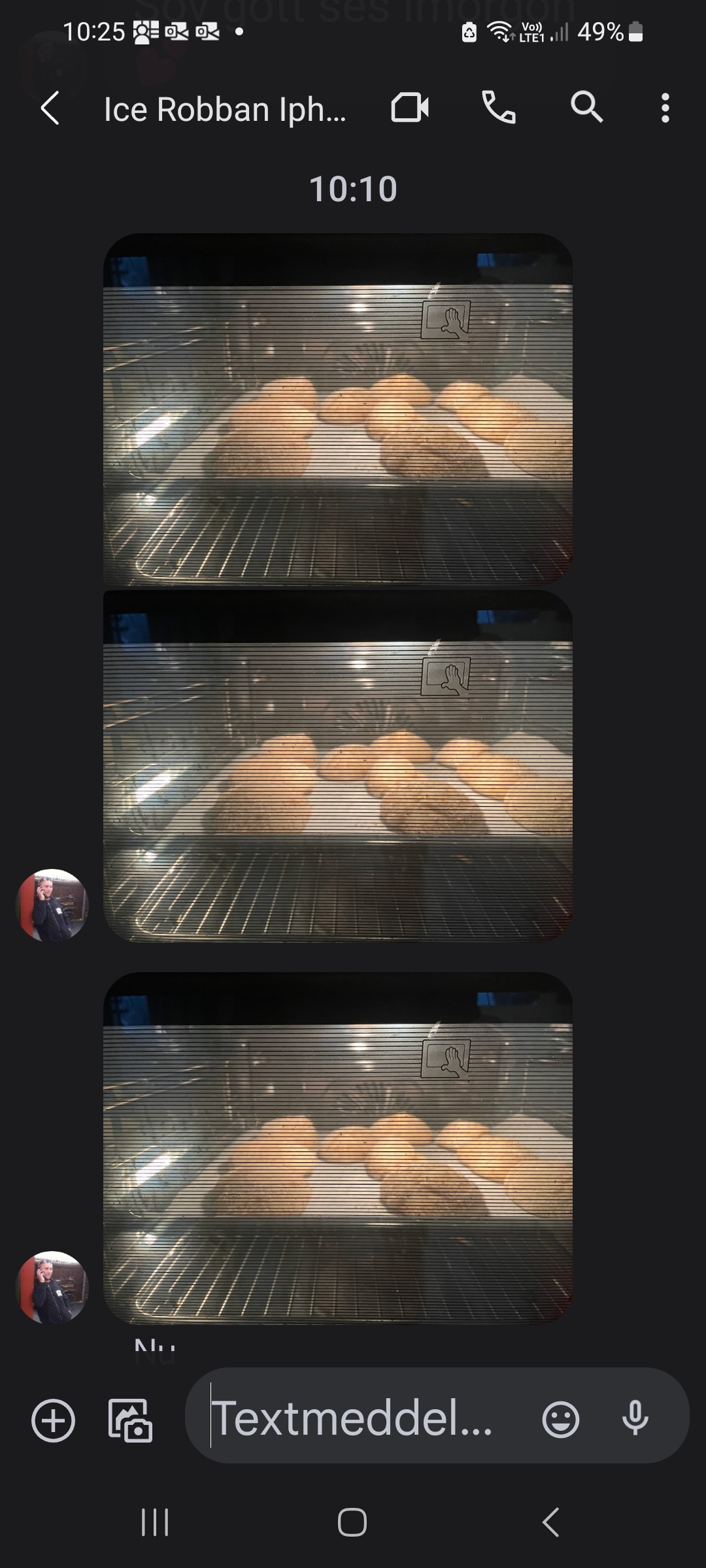 Efter frukosten så skickade han en bild till mig på frallorna när som stod i ugnen. Jag tog det som en liten tyst bön om att få hamna i bloggen. Speciellt med tanke på att han skickade samma bild TRE gånger. 🤣