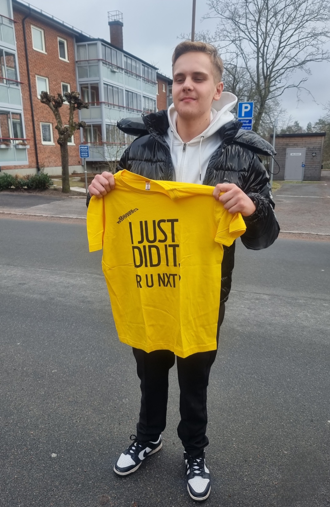 På Göinge trafikskola får alla, som klarat körkortet, en t-shirt.