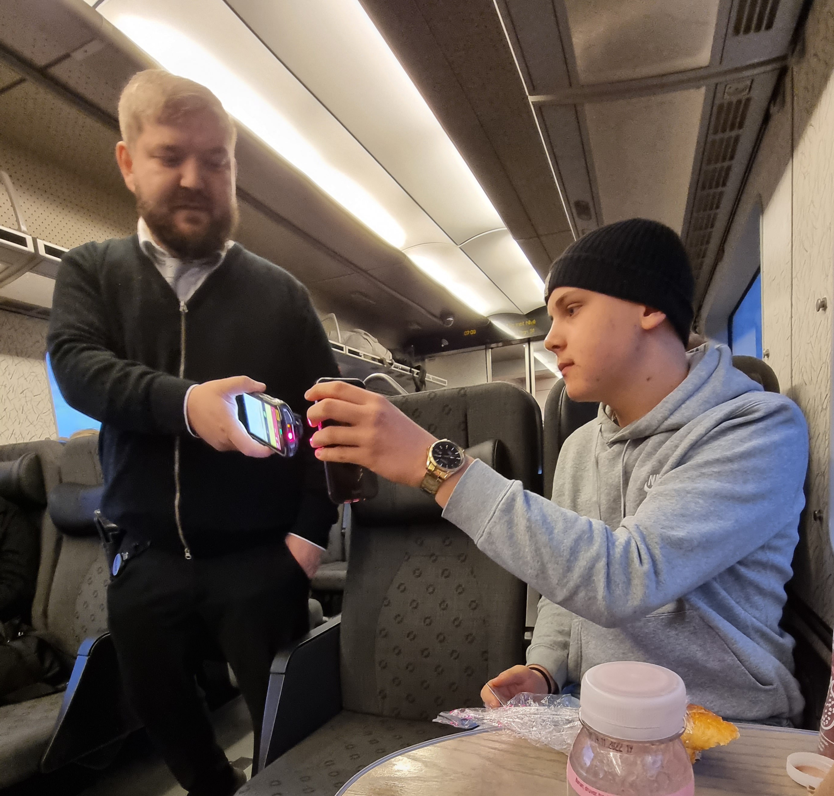 Liam förstod inte alls min stress över kommande biljettköp. Lite knappande på mobilen så hade han köpt en biljett i en app. Han behövde minsann ingen kvinna med skarfs och väst. Han passade samtidigt på att berätta för mig hur ologiskt och ute det är att ha pappersbiljett 😳