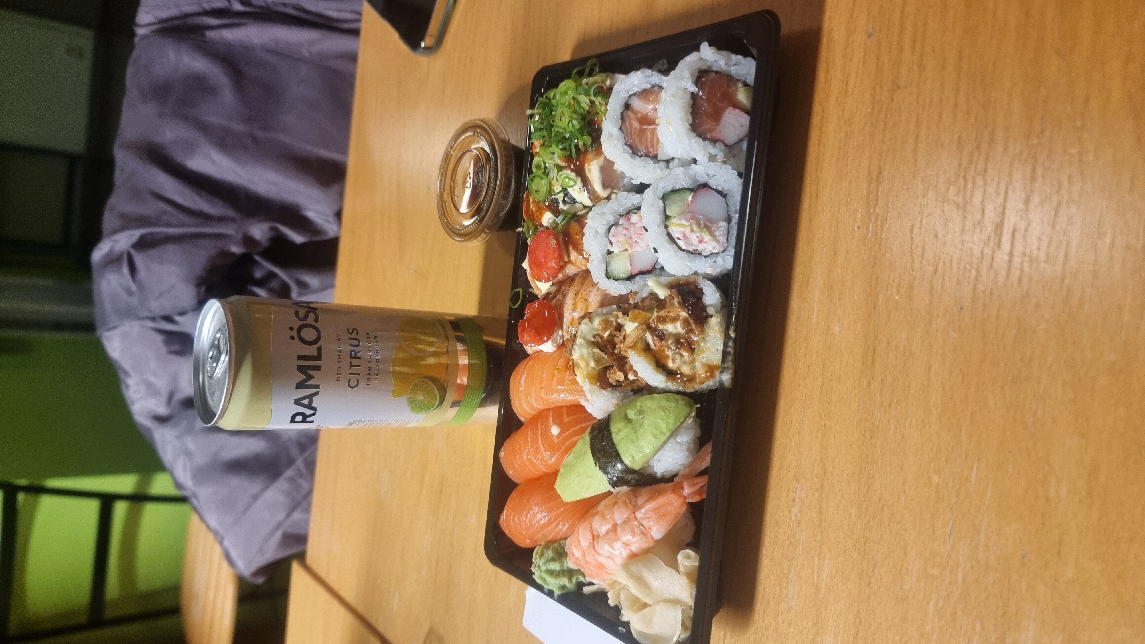 Idag hämtade jag upp sushi innan skolan och sen satt jag och 2 av mina klasskompisar och käkade vår allra sista lunch på skolan. Det kändes minst sagt vemodigt.