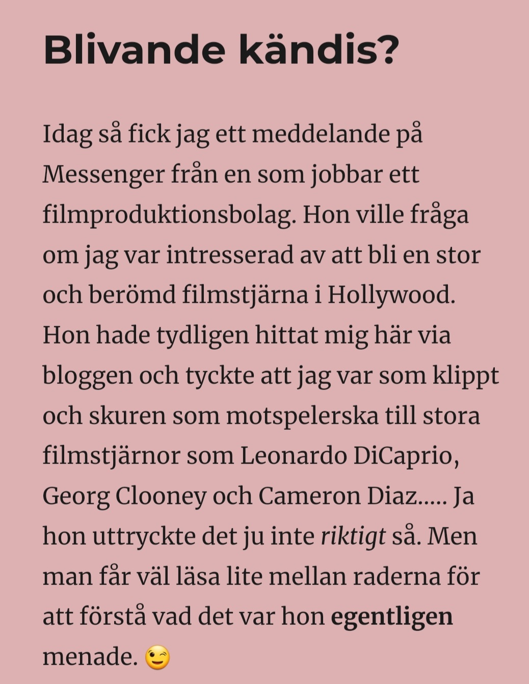 Dom av er som följt min blogg under några år minns kanske att jag skrev i ett blogginlägg i juni 2020 där jag berättade att jag blivit kontaktad av en "biträdande producent" som ville göra mig till kändis?