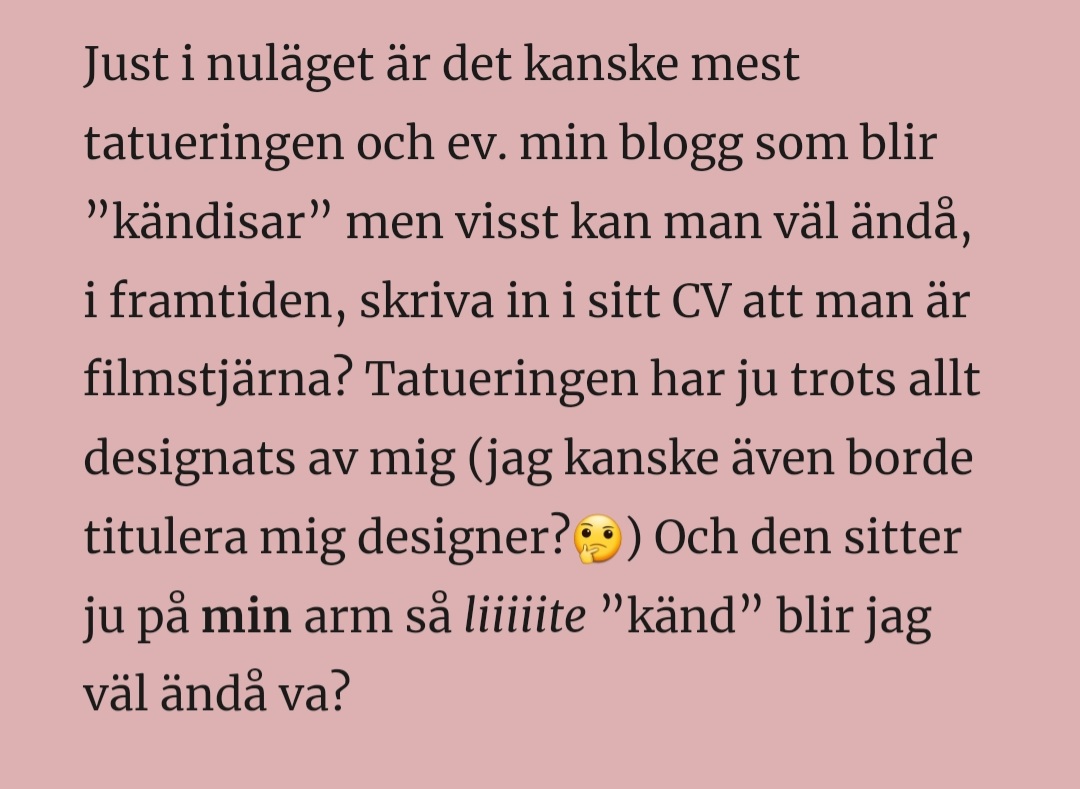 Eller ja, det var ju precis innan den faktiskt blev en riktig tatuering, men det är ju iallafall min arm som den där ritningen sitter på. 🤣